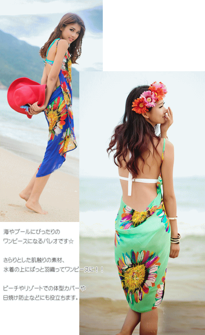 【素材】ポリエステル 【サイズ】 F 海やプールにぴったりのワンピースになるパレオです☆