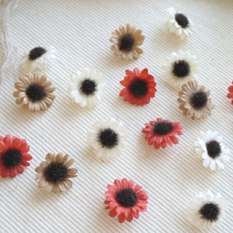 ドライのアーティシャルフラワーのひまわりをベビーちゃん用のヘアゴムにしました。
